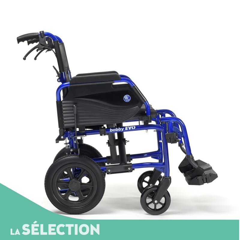 Le BOBBY EVO est un fauteuil de transfert compact, léger et pratique, pensé pour simplifier les déplacements au quotidien. Grâce à ses accoudoirs escamotables, il permet un transfert latéral aisé et s’adapte facilement à différents environnements.